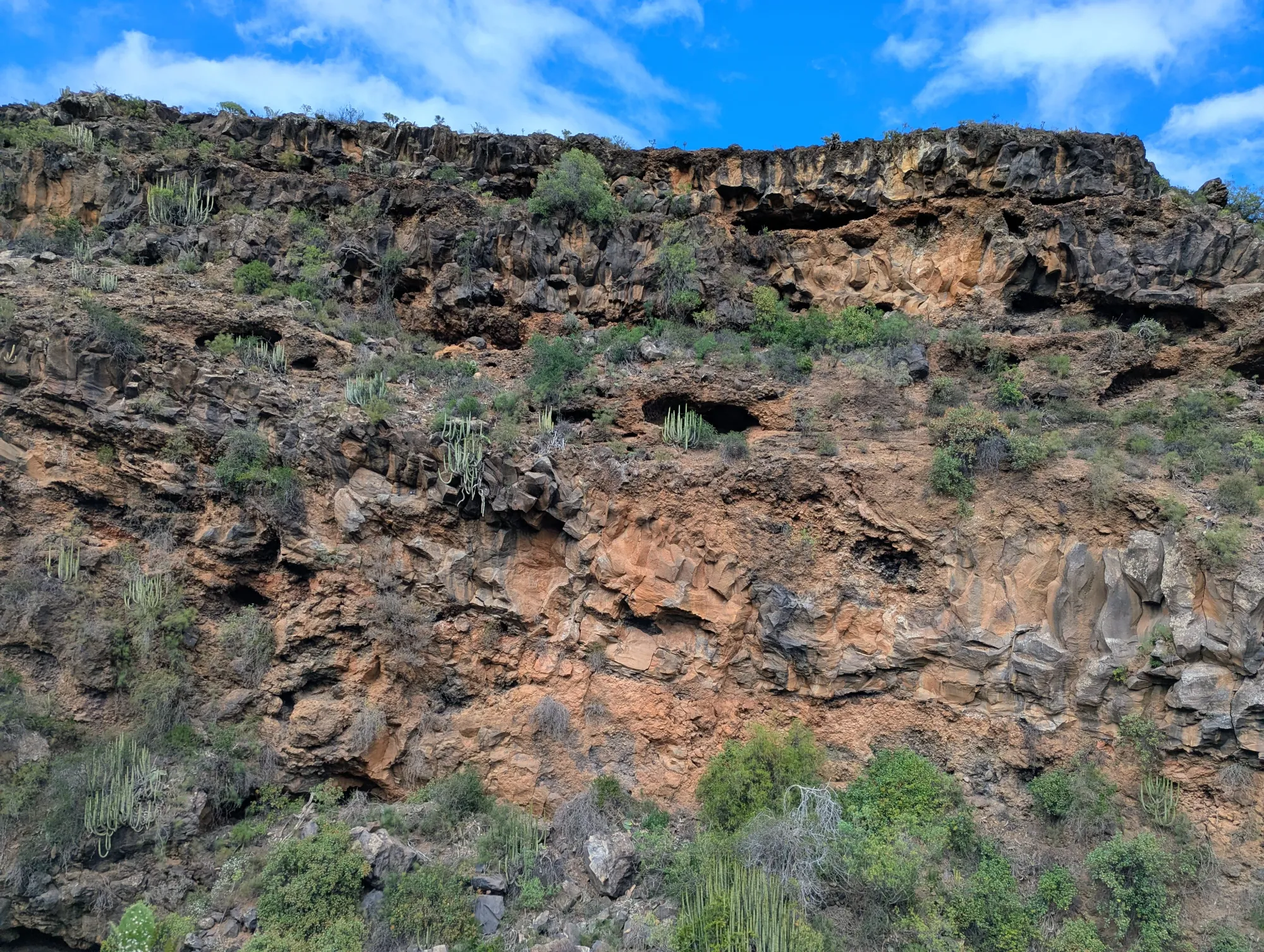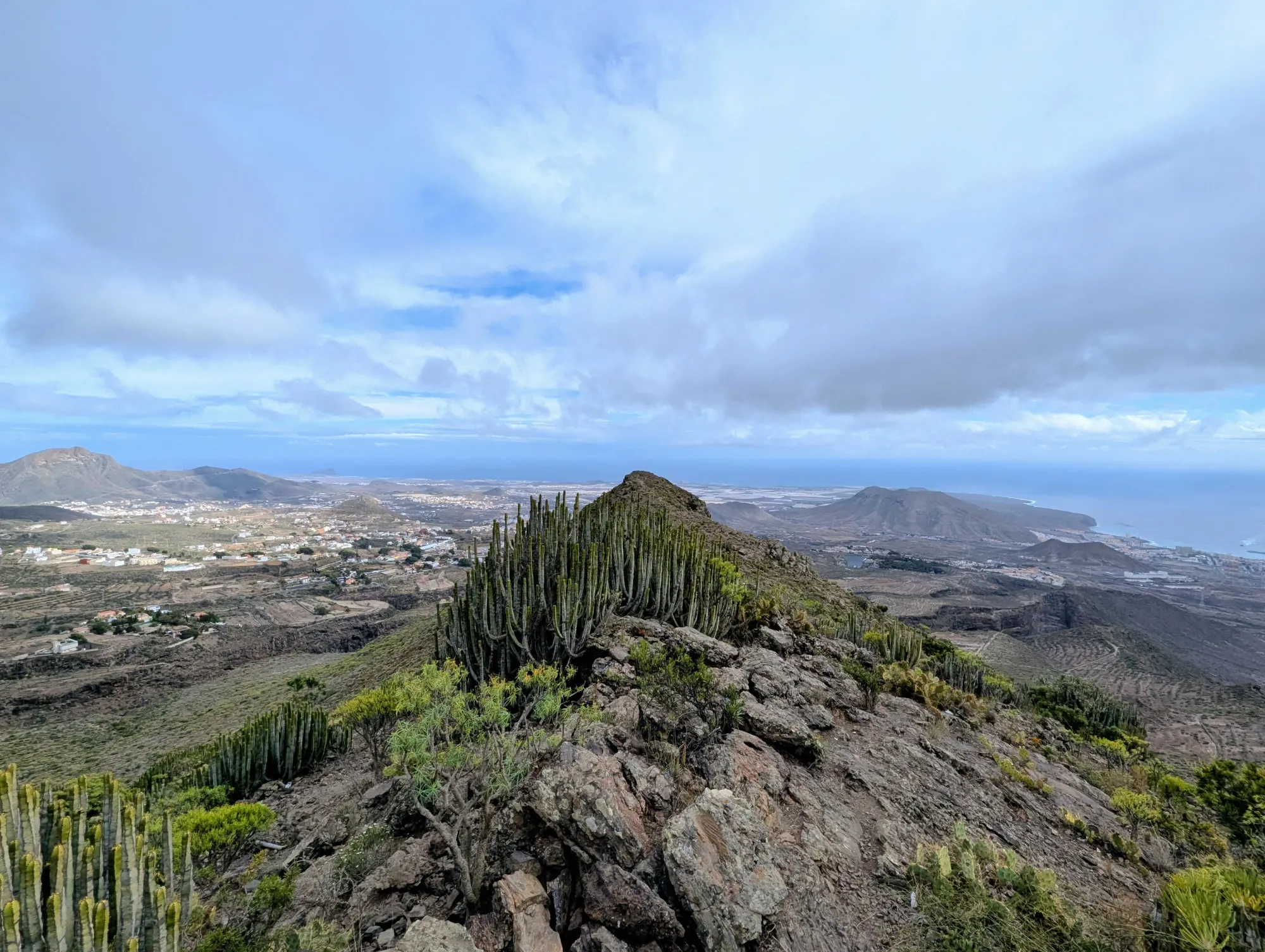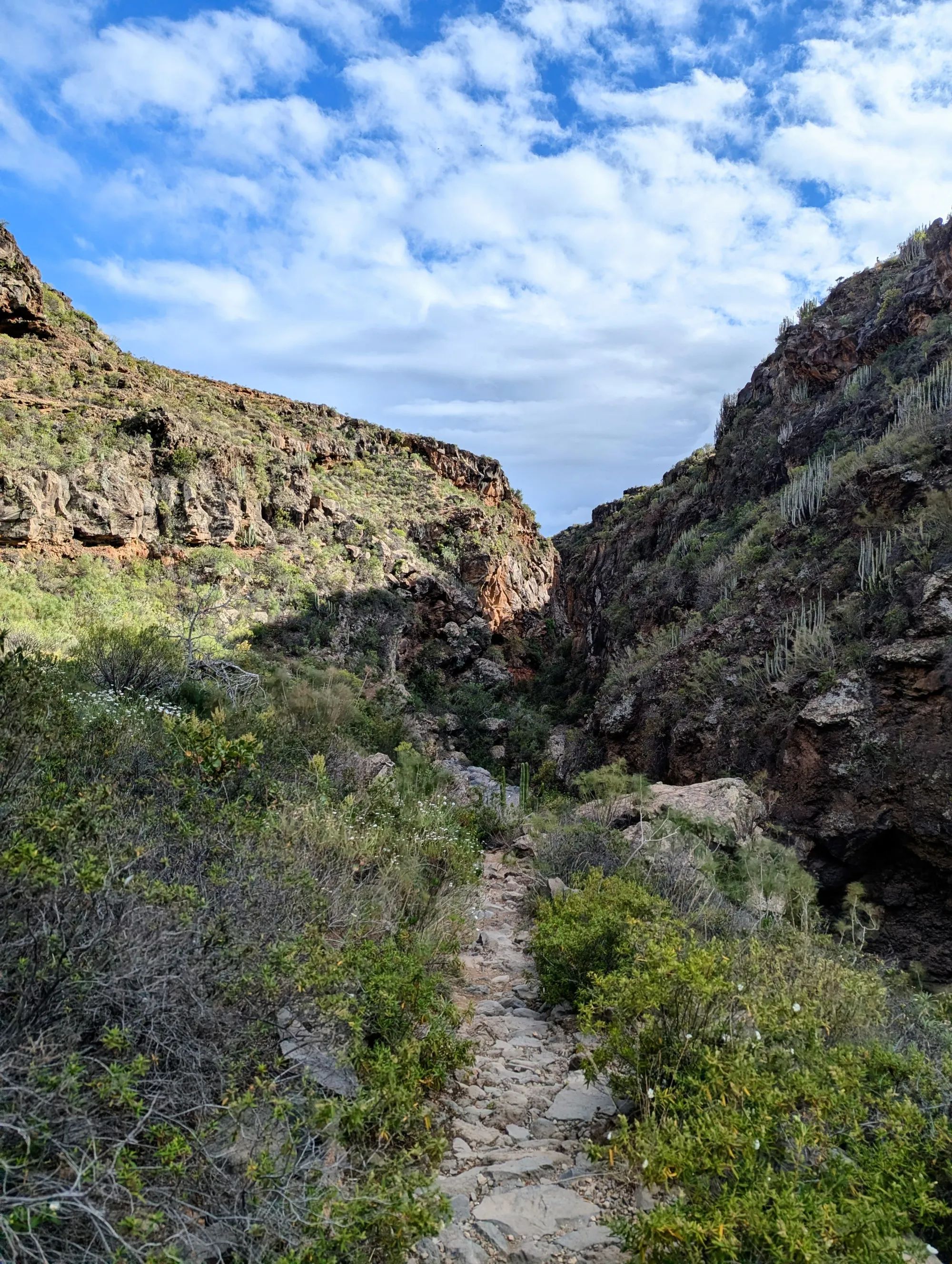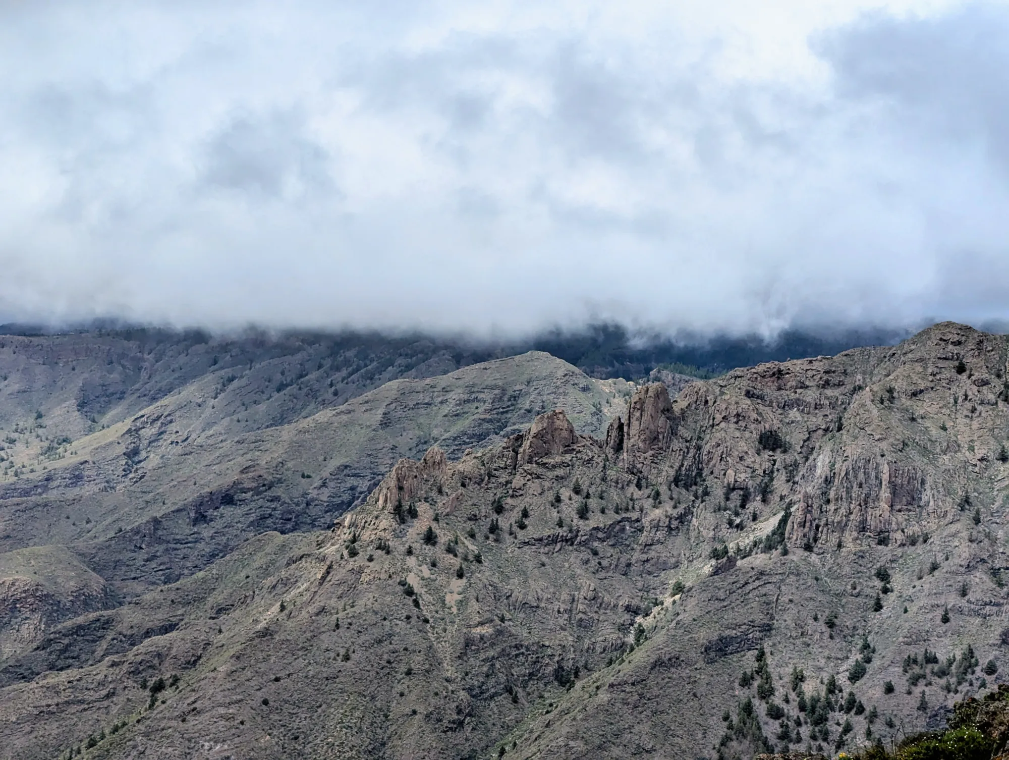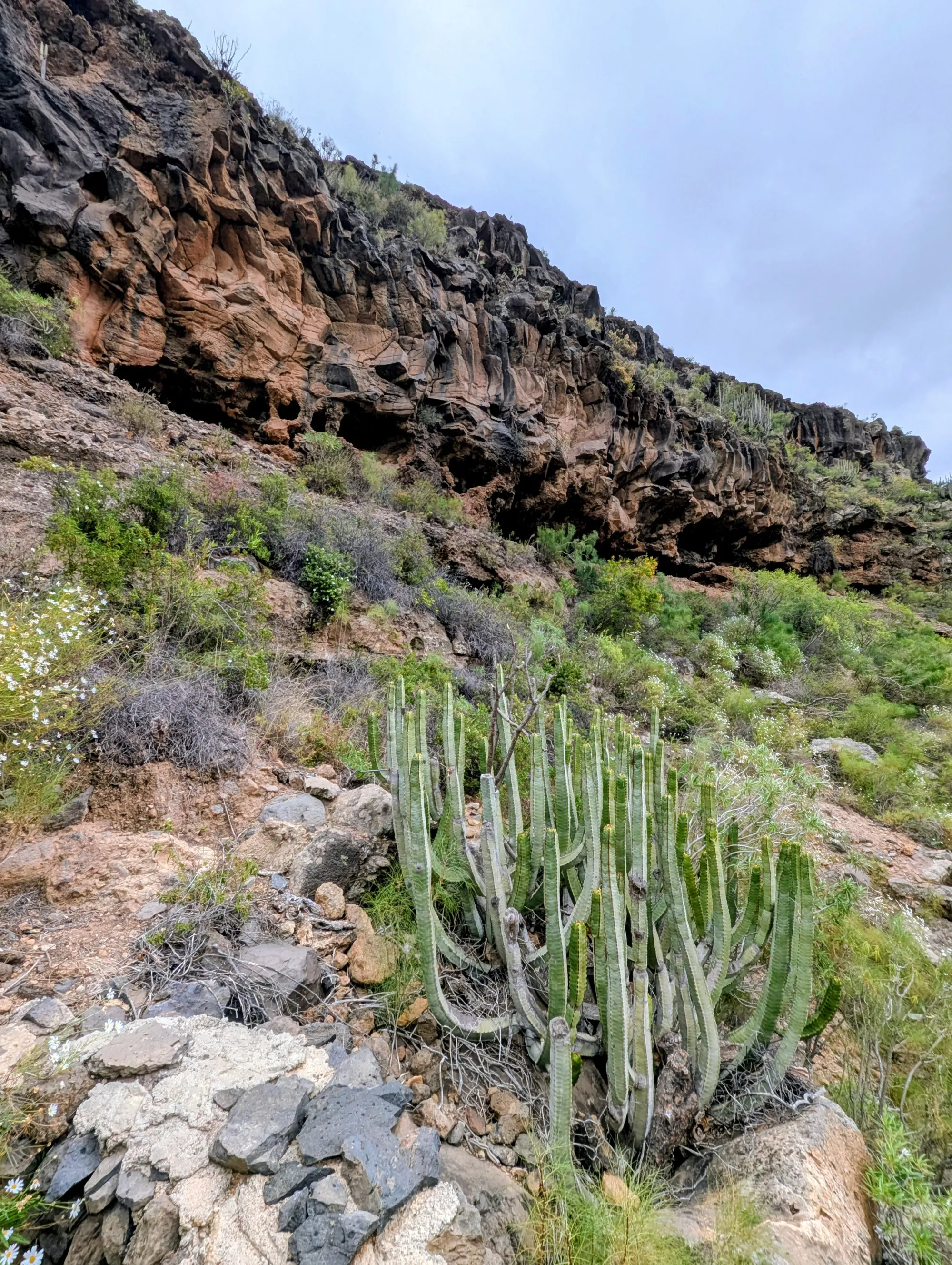 Ohne Frühstück geht nix. Da Unwetter Theresa für Sperrungen der Wege sorgt, wurde unser Tagesziel abgesagt. Aber es gibt kaum etwas, was ein frischer Orangensaft und ein Croissant nicht wieder richten können.Kurz entschlossen entscheiden wir uns für eine andere AufwärmtourDer Schicksalsberg begleitet uns die ganze Zeit, ist aber nicht unser Ziel. Wir haben aber den Ring nicht dabei.Mal läuft der Weg gerade, dann ist Freude angesagt..Manchmal ist es aber auch einfach nur sehr schwer. Der Ausblick auf einen Gipftel-Snack macht müde Männer munter.Sprühregen und Sonne wechseln sich ab, es geht kräftiger Wind.Roter und Bauer Anorak, man erkennt die Deutschen.Der ist als nächstes Abenteuer schon gesetzt.Der kleine Canyon mit seinen unzähligen Höhlen ist Lebensraum von Eidechsen und Felstauben.Die Sonne steht tief und wir haben HungerWir fahren nach Vilafior, der hächet gelegenen Stadt Teneriffas auf 1400m. Im Vorgarten der Kirche wächst die landestypische Rote Tanaste. Weil wir so fröhlich darüber sind sie blühend zu sehen erklärt uns eine Einheimisch, dass aus den Pollen ein spezieller Honig gemacht wird.Bevor die Sonne untergeht besuchen wir noch zwei Superlative. Spaniens dickster Baum, 9.3m Umfang, 3.16m Durchmesser. Und auch noch der dritt höchste. Er steht schon seit über 800 Jahren und ist einfach mächtig gewaltig.Er bietet Lebensraum für viele Spechte.Ganz schön dickes Ding.Auf zum höchsten Baum Spaniena, 600 Jahre alt und 58m hoch, 100m vom dicksten Beum entfernt. Jetzt aber schnell was essen gehen, sonst kippen wir aus den Latschen