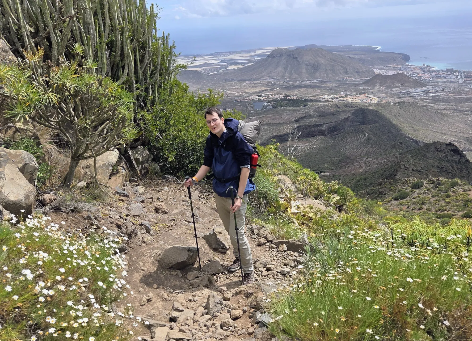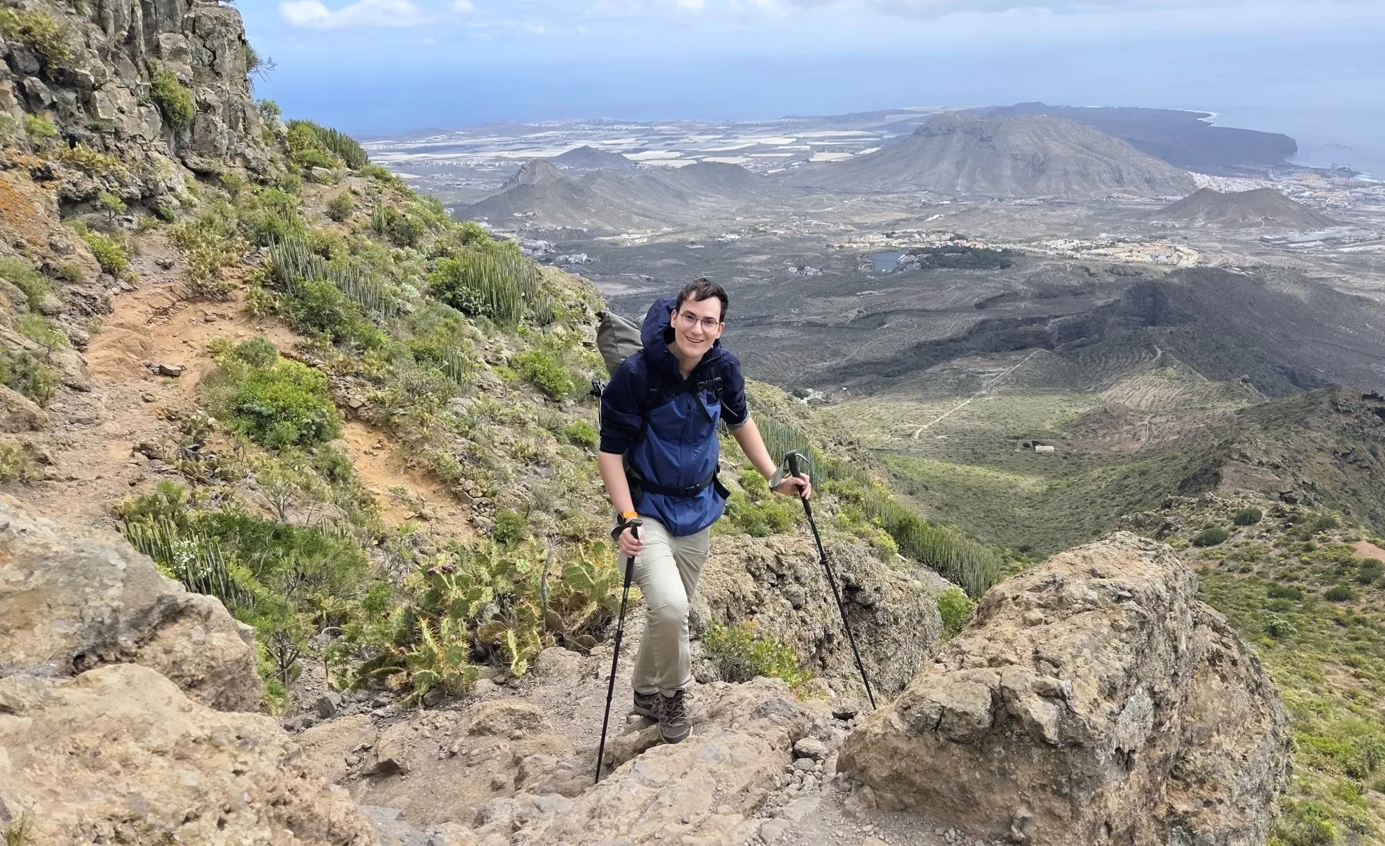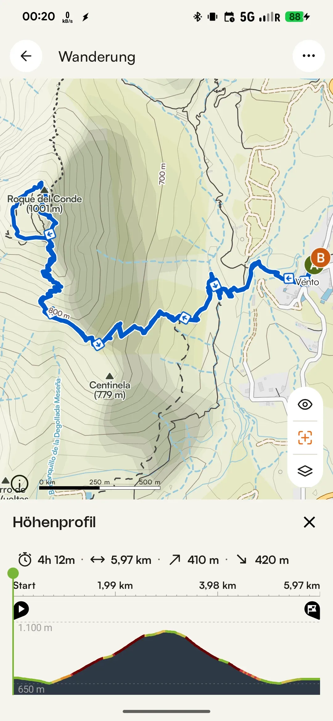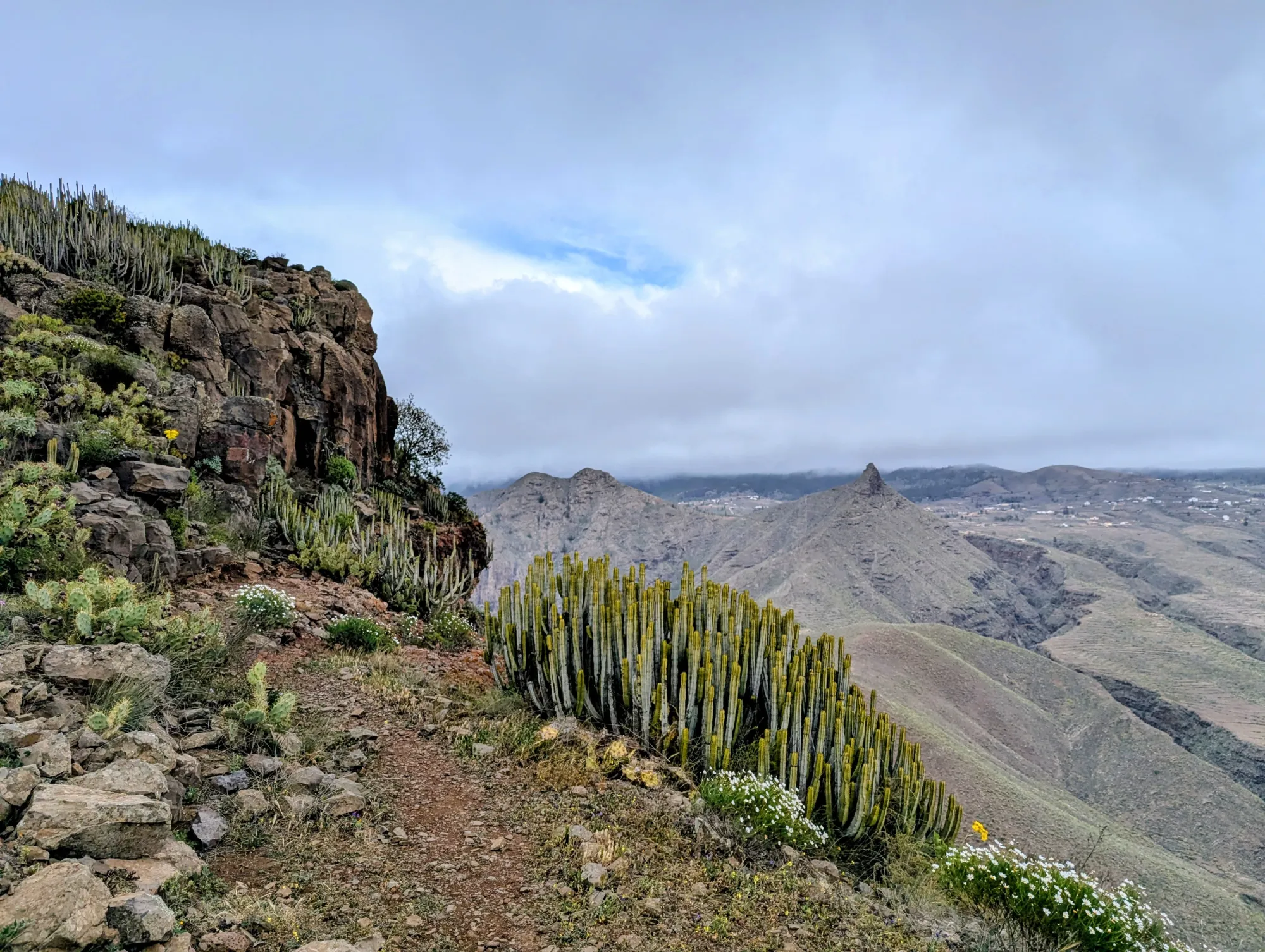 Ohne Frühstück geht nix. Da Unwetter Theresa für Sperrungen der Wege sorgt, wurde unser Tagesziel abgesagt. Aber es gibt kaum etwas, was ein frischer Orangensaft und ein Croissant nicht wieder richten können.Kurz entschlossen entscheiden wir uns für eine andere AufwärmtourDer Schicksalsberg begleitet uns die ganze Zeit, ist aber nicht unser Ziel. Wir haben aber den Ring nicht dabei.Mal läuft der Weg gerade, dann ist Freude angesagt..Manchmal ist es aber auch einfach nur sehr schwer. Der Ausblick auf einen Gipftel-Snack macht müde Männer munter.Sprühregen und Sonne wechseln sich ab, es geht kräftiger Wind.Roter und Bauer Anorak, man erkennt die Deutschen.Der ist als nächstes Abenteuer schon gesetzt.Der kleine Canyon mit seinen unzähligen Höhlen ist Lebensraum von Eidechsen und Felstauben.Die Sonne steht tief und wir haben HungerWir fahren nach Vilafior, der hächet gelegenen Stadt Teneriffas auf 1400m. Im Vorgarten der Kirche wächst die landestypische Rote Tanaste. Weil wir so fröhlich darüber sind sie blühend zu sehen erklärt uns eine Einheimisch, dass aus den Pollen ein spezieller Honig gemacht wird.Bevor die Sonne untergeht besuchen wir noch zwei Superlative. Spaniens dickster Baum, 9.3m Umfang, 3.16m Durchmesser. Und auch noch der dritt höchste. Er steht schon seit über 800 Jahren und ist einfach mächtig gewaltig.Er bietet Lebensraum für viele Spechte.Ganz schön dickes Ding.Auf zum höchsten Baum Spaniena, 600 Jahre alt und 58m hoch, 100m vom dicksten Beum entfernt. Jetzt aber schnell was essen gehen, sonst kippen wir aus den Latschen