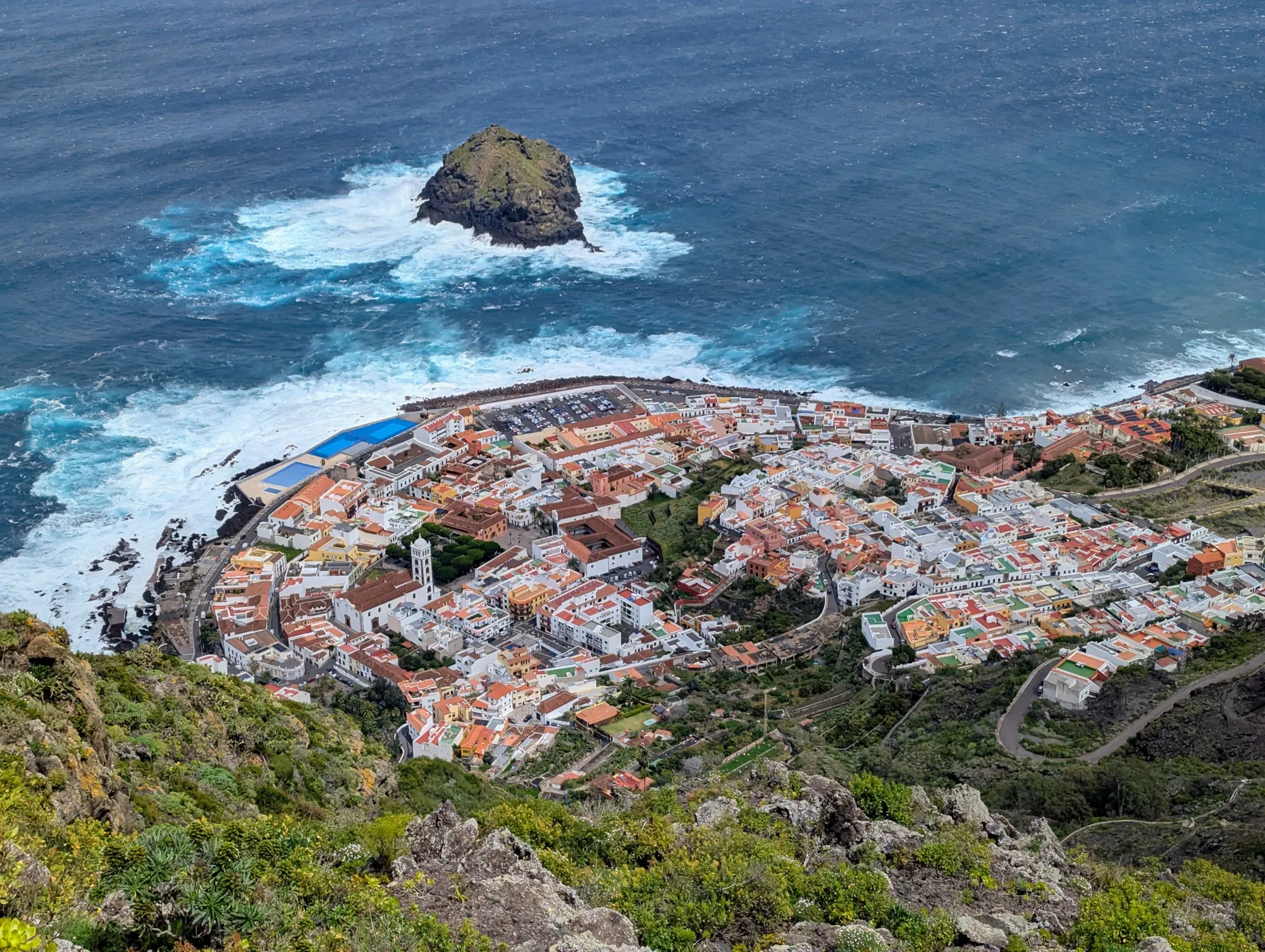 Das Sturmtief Therese und die Vorbereitungen des Inselrats die Insel zu sichern sorgen für viele gesperrte Wege. Hier merken wir schon den starken Wind.Dennoch sollen wir auch die kommenden Tage weitestgehend verschont bleiben. Das Wetter ist gut und teils sogar warm. Hier der idyllische Blick auf das Städtchen Garachico.Hier nun ein kurzer Überblick zu unserer Unterkunft für die nächsten 6 Tage. Udo & Ines vermieten offensichtlich fast nur an Deutsche.